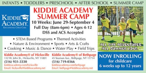 Kiddie Academy of Bethpage Description Kiddie Academy of Bethpage offers programs for infants, toddlers, preschool, after school and summer camp for children 6 weeks to 12 years old. Website www.kiddieacademy.com/bethpagePhone Number 516-719-0366ZIP Code 11714Address 45 Seaman Ave, Bethpage, NY Directions to listing From: Current location Specific Address Travel Mode: Driving Public Transit Walking Cycling Contact listing ownerSend Message Name Email Phone Number Message
