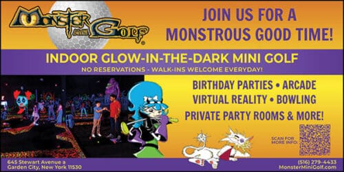 Upon entering Monster Mini Golf, all perceptions of traditional mini golf will be spirited away by the indoor, 18 hole, monster-theme, glow-in-the-dark miniature golf course! Guests are invited to experience a host of family-oriented fun activities. Whether visiting for the first time, or the one hundredth, mini golfers feel the excitement and adventure of playing mini golf amidst spooktacular monsters and custom, glow in the dark, hand painted artwork. While testing their skill on the fairways, lively music flows over the course from the unique “WEIRD Radio” station” and an interactive DJ entertains golfers with contests, awarding cool prizes for the wackiest reasons. While the course is challenging enough for adults, it is also quite playable for children. Monster Mini Golf is open year round and frightfully fun for the entire family. In addition to miniature golf and thrilling arcade and redemption games, we offer additional attractions, Laser Maze, Bowling and a Virtual Reality Experience. Two very posh, private party rooms are also available and are perfect for any event. Monster Mini Golf looks forward to making it a monstrous success. Monster Mini Golf is indoors, ensuring that the event will always take place, regardless of the weather. It is a climate controlled, affordable source of family entertainment.