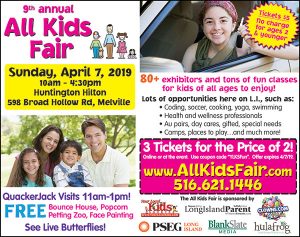 9th Annual All Kids Fair Sunday, April 7th – 10am – 4:30pm – Huntinton Hilton in Melville Event details:Start dateApril 7, 2019 10:00 amStart time10:00 amEnd time4:30 pmLocationAll Kids Fair - Huntington HiltonLocation Address598 Broad Hollow Road, MelvilleWebsitewww.allkidsfair.comGoogle Calendar iCal feed URL https://dev-yourlocalkids.com/?rhc_action=get_icalendar_events&ID=19975 Get Feed for iCal (Google Calendar). This is for subscribing to the events in the Calendar. Add this URL to either iCal (Mac) or Google Calendar, or any other calendar that supports iCal Feed. Download ICS file Venue DetailsVenueAll Kids Fair - Huntington HiltonAddress598 Broad Hollow Road, MelvilleCityMelvillePostal code11747StateNYInformationPhone516-621-1446EmailBarbara@AllKidsFair.comWebsitewww.allkidsfair.comGet directionsGet directions |||:: 598 Broad Hollow Road, Melville, NY 11747