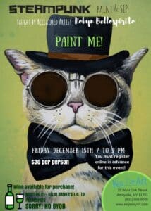 Friday, December 15th – 7pm – 9pm – $30 per person. Taught by acclaimed artist Robyn Bellospirito. Wine available for purchase. No BYOB. Must be 21 to participate with valid drivers license. Online RSVP Required.