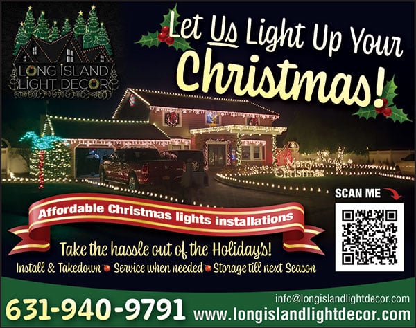 Long Island Light Decor November 4, 2023 by Jennifer Keegan Let Us Light Up Your Christmas! We Take The Hassle Out Of The Holiday’s For more information, www.longislandlightdecor.com 631-940-9791 Sponsored Advertising by Long Island Light Decor